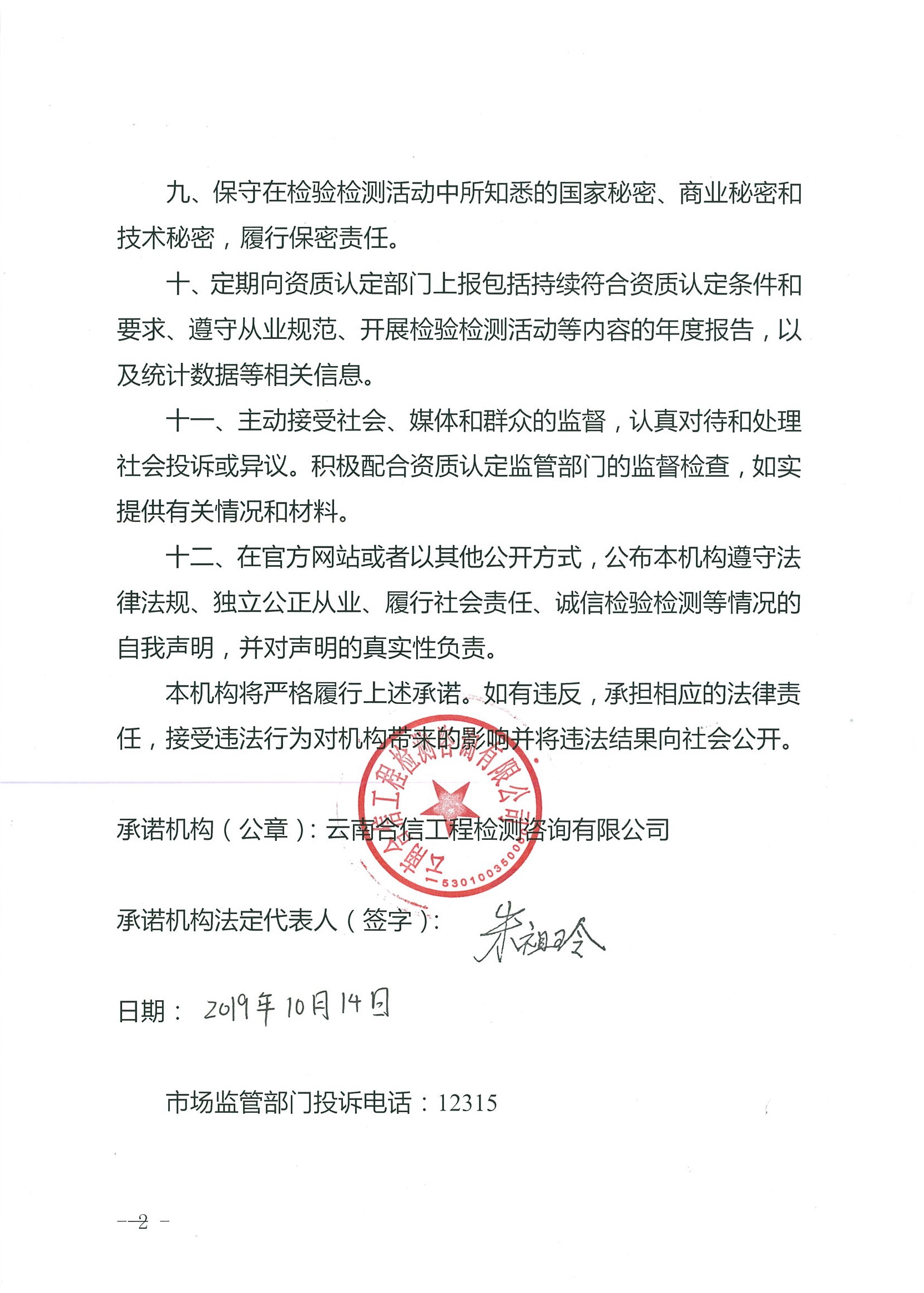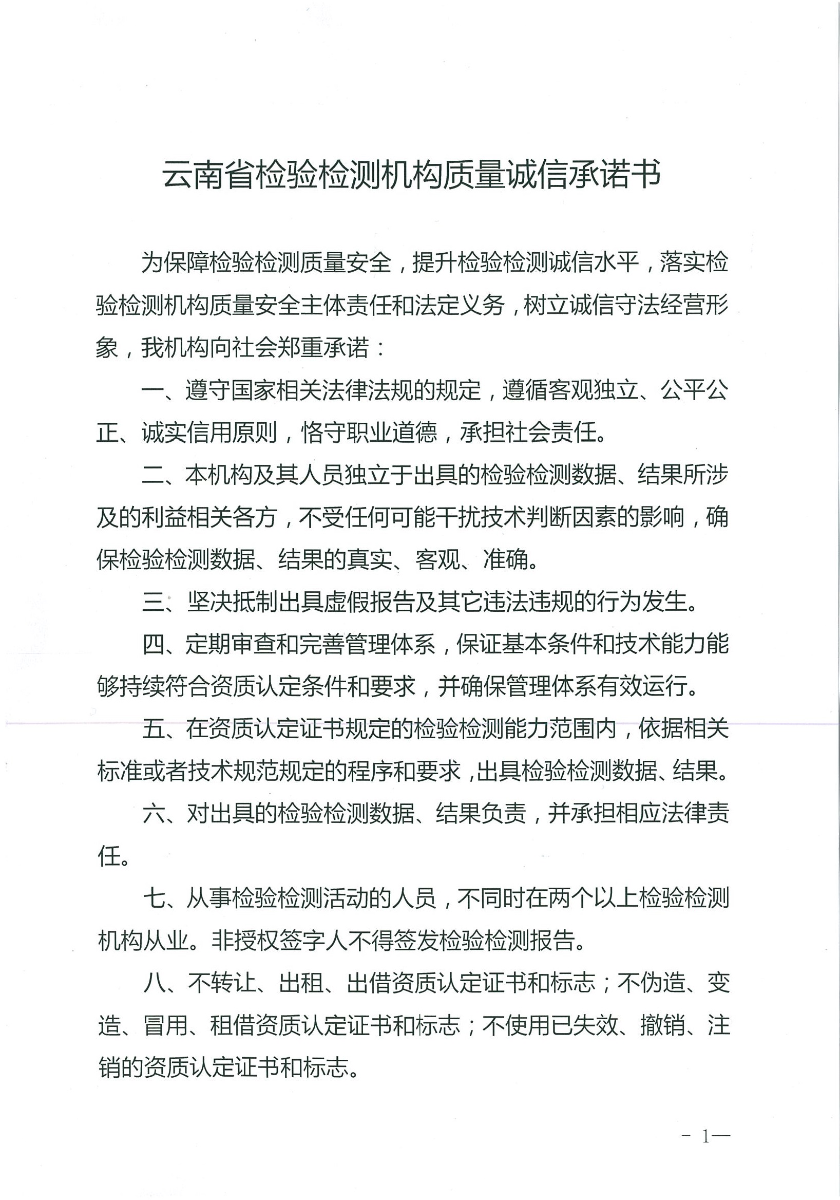 云南省檢驗(yàn)檢測(cè)機(jī)構(gòu)質(zhì)量誠(chéng)信承諾書(shū)