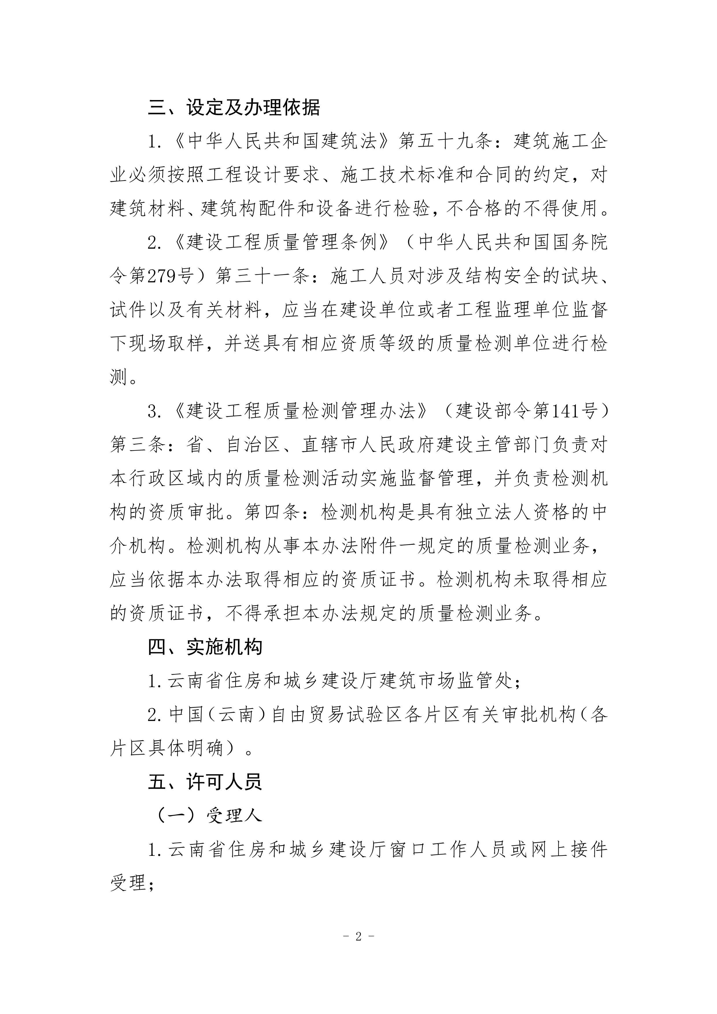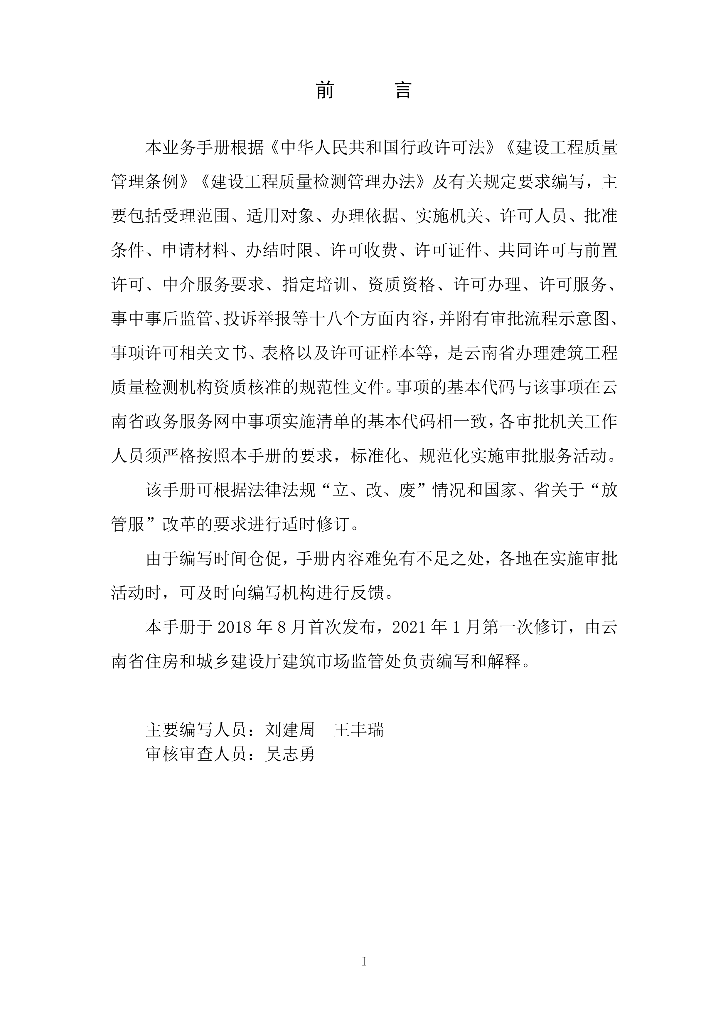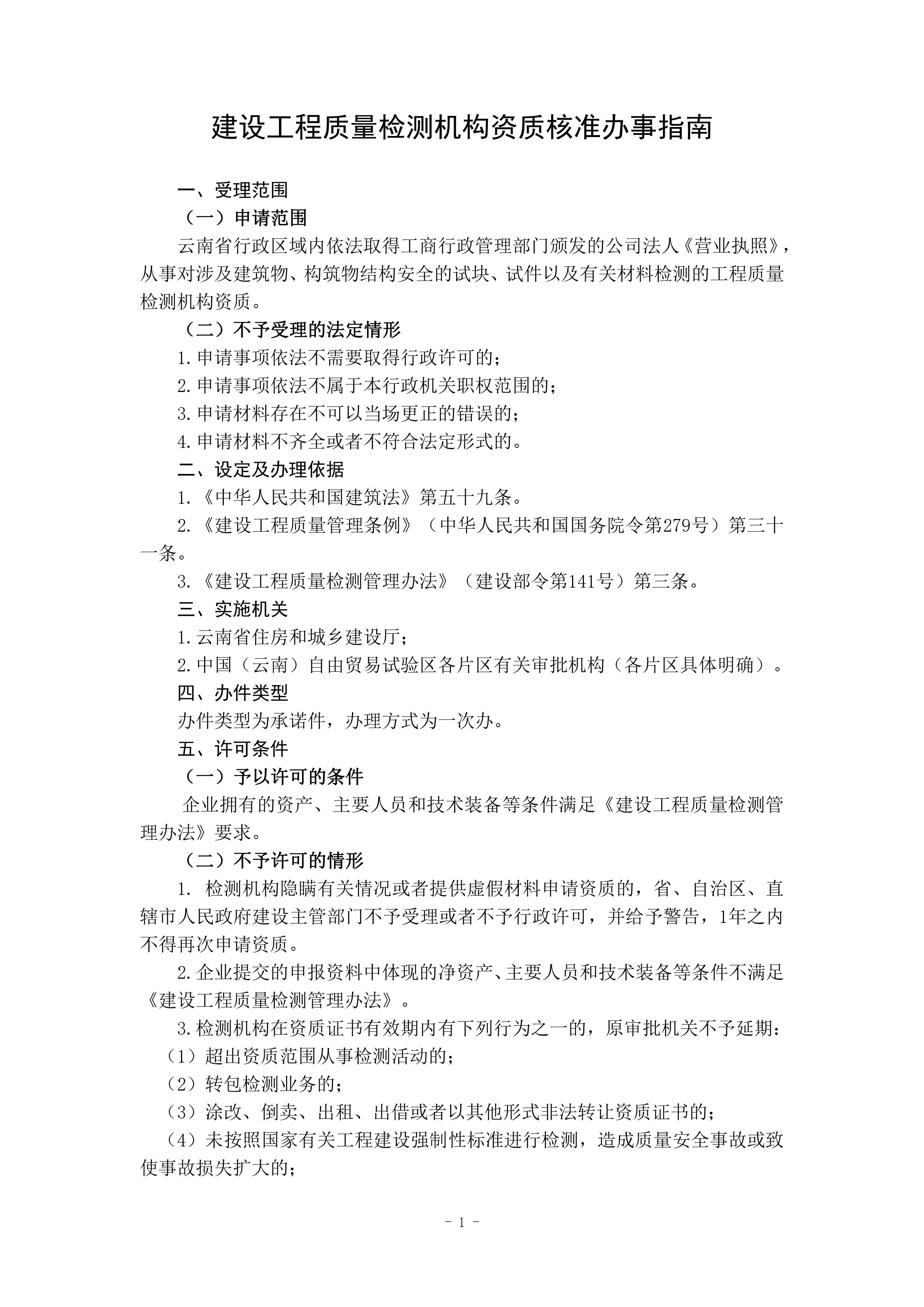 根據(jù)《云南省人民政府關(guān)于調(diào)整482項涉及省級行政權(quán)力事項的決定的通知》(云政發(fā)〔2020〕16 號)、《云南省人民政府關(guān)于調(diào)整112項涉及州級及以下行政權(quán)力事項的決定》(云政發(fā)〔2020〕21號)、《云南省人民政府辦公廳關(guān)于公布云南省省級政務(wù)服務(wù)事項(2020年版) 的通知》(云政辦發(fā)〔2020〕39 號)、《云南省人民政府關(guān)于向中國(云南)自由貿(mào)易試驗區(qū)各片區(qū)管委會下放第一批省級管理權(quán)限的決定》(云政發(fā)〔2020〕34號)等文件精神,省住房城鄉(xiāng)建設(shè)廳于2021年1月20日對涉及省級下放自貿(mào)區(qū)各片區(qū)的“建筑施工企業(yè)安全生產(chǎn)許可證核發(fā)”等9項政務(wù)服務(wù)事項辦事指南和業(yè)務(wù)手冊進(jìn)行了編寫或修訂,現(xiàn)將“建設(shè)工程質(zhì)量檢測機(jī)構(gòu)資質(zhì)核準(zhǔn)業(yè)務(wù)手冊和辦事指南(完整版)”發(fā)布如下: