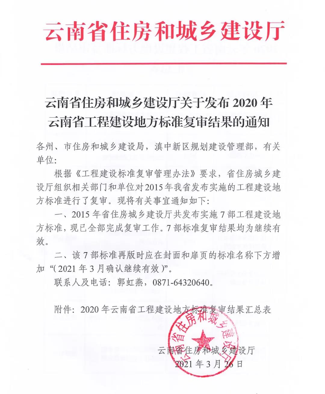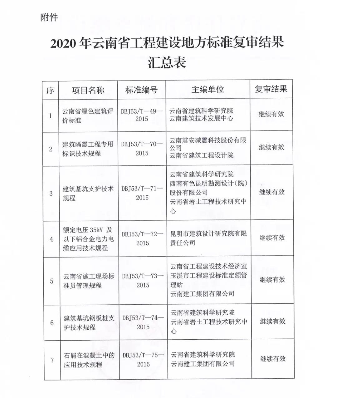 省住建廳關(guān)于發(fā)布2020年云南省工程建設(shè)地方標(biāo)準(zhǔn)復(fù)審結(jié)果的通知